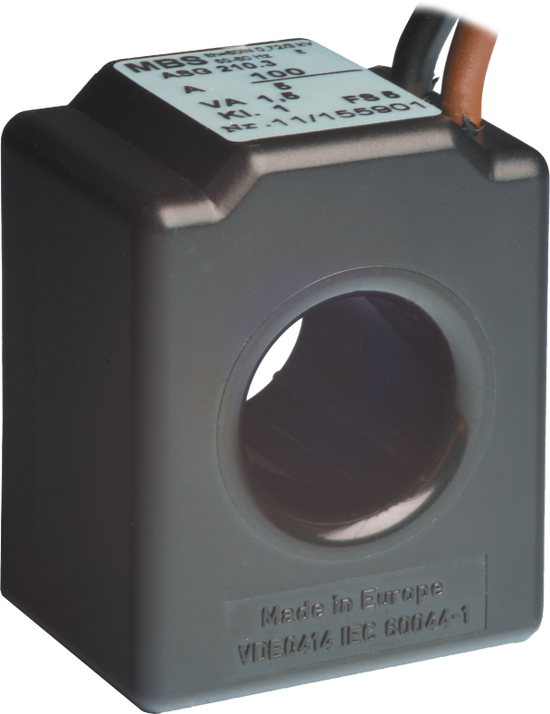 Měřicí transformátor proudu s kruhovým otvorem se zvýšenou mechanickou odolností. Jednofázový transformátor proudu pro kruhové vodiče o průměru 20,8 mm. Model ASG 210.3 poskytuje specifika týkající se fyzické velikosti, montáže a elektrických jmenovitých hodnot, jako jsou krátkodobé proudové a izolační zkoušky vhodné pro nízkonapěťové aplikace kolem 0,72 kV.