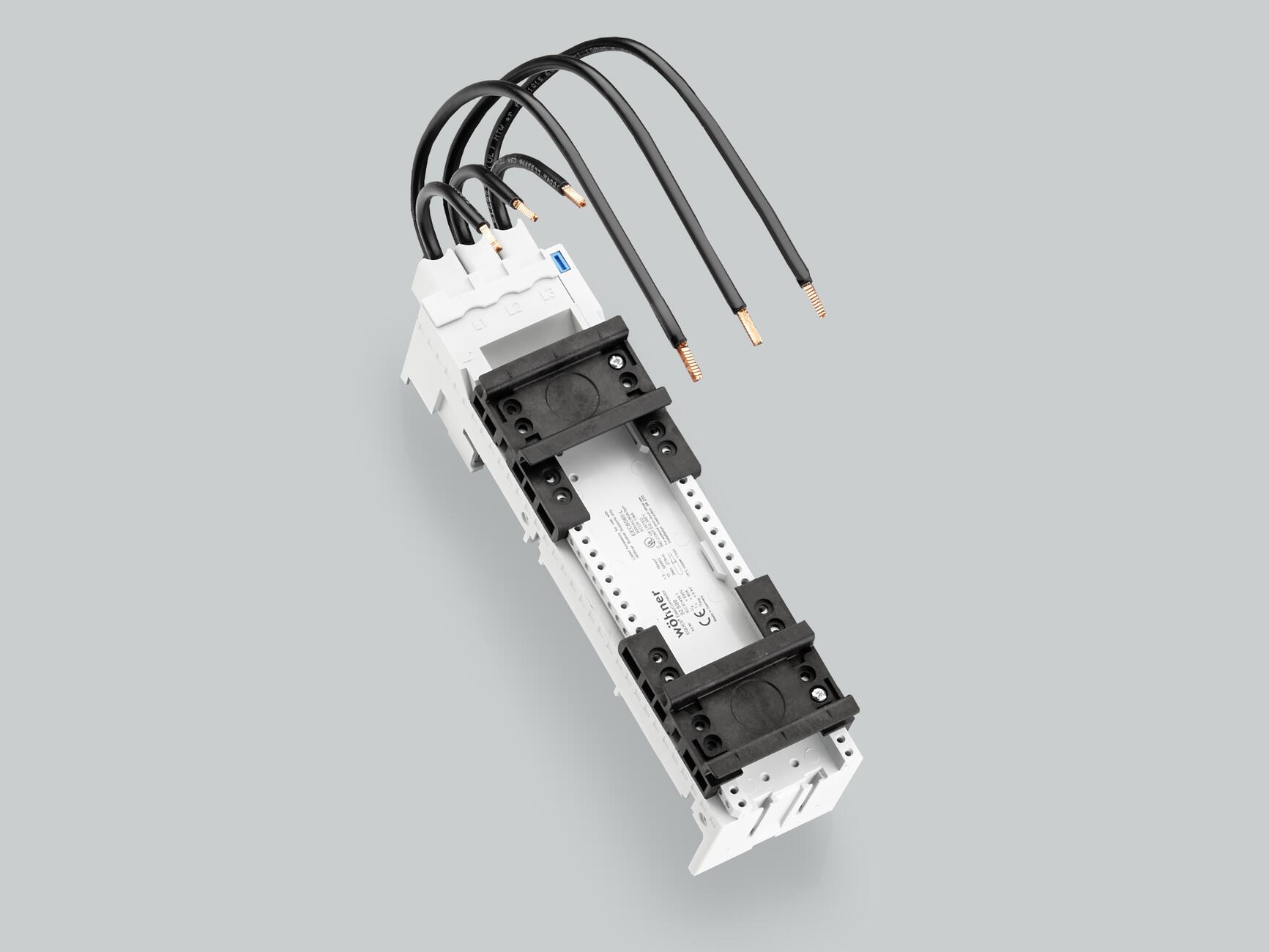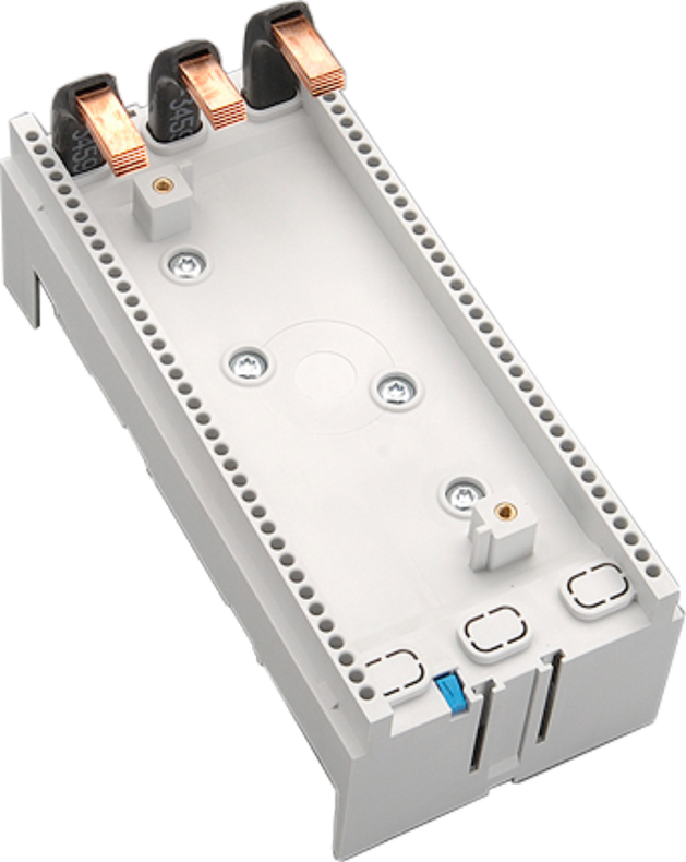 Adaptéry v sebe kombinujú bezpečnosť a veľa inovovaných detailov. Sú prispôsobené na rôzne rozmery prípojníc a ponúkajú nové možnosti aplikácie s vynikajúcou ochranou proti dotytu živých častí. Adaptéry s lištou DIN sú určené na pripojenie modulárneho prístroja napr. ističa na prípojnicový systém.