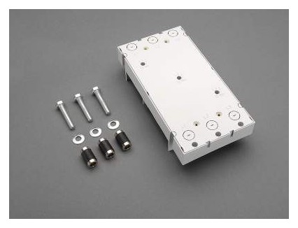 Adaptér 45A (IEC)/45A (UL), 3-pólový; 2 nastavitelné montážní lišty; s odjímatelnou horní částí; vodiče AWG 8 (10mm2); rozměry: 54 x 200 x 75 mm; tep. odolnost 125°C; samozhášivost dle UL94;
