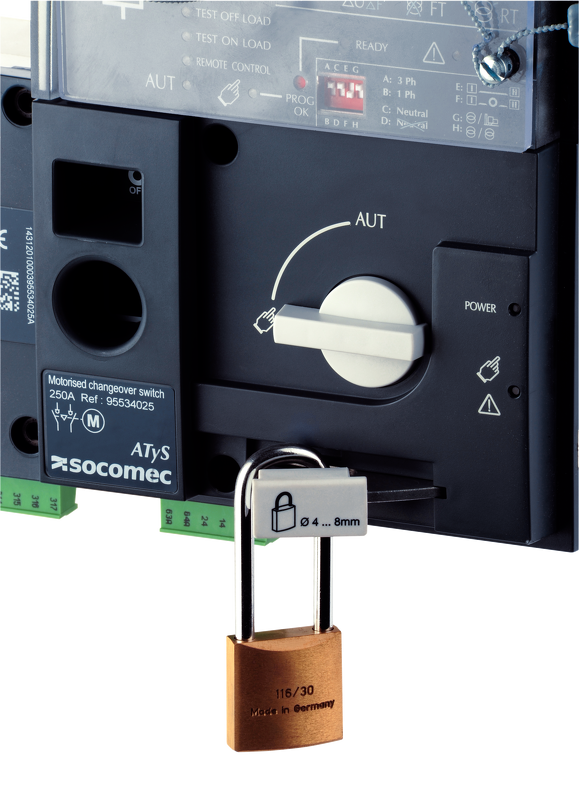 Prepínač ATYS r je vybavený pomocným rozpínacím kontaktom, signalizujúci