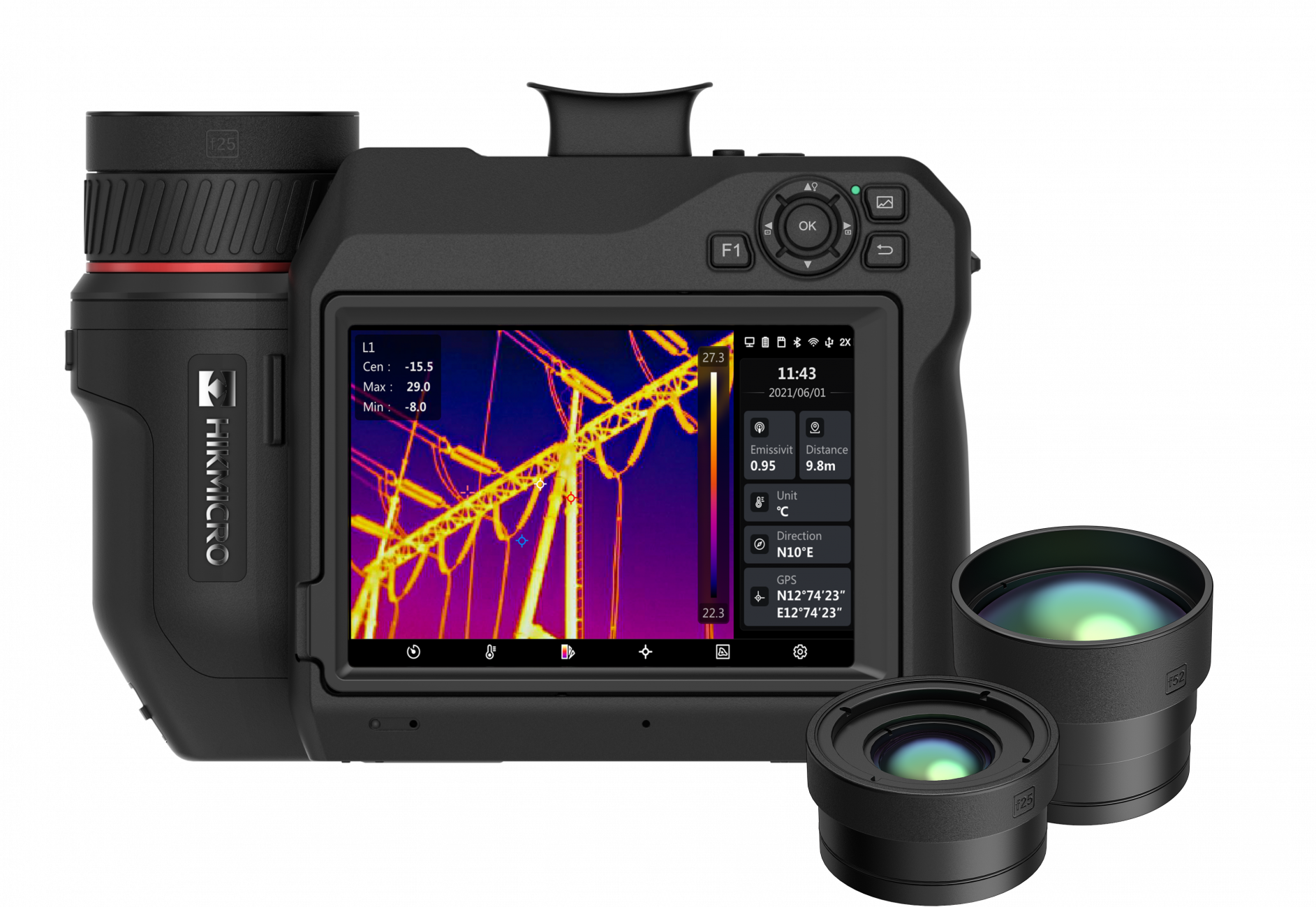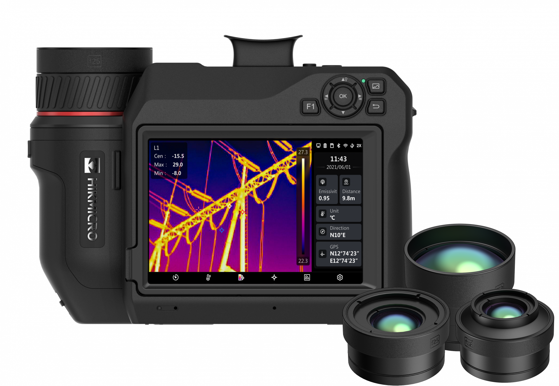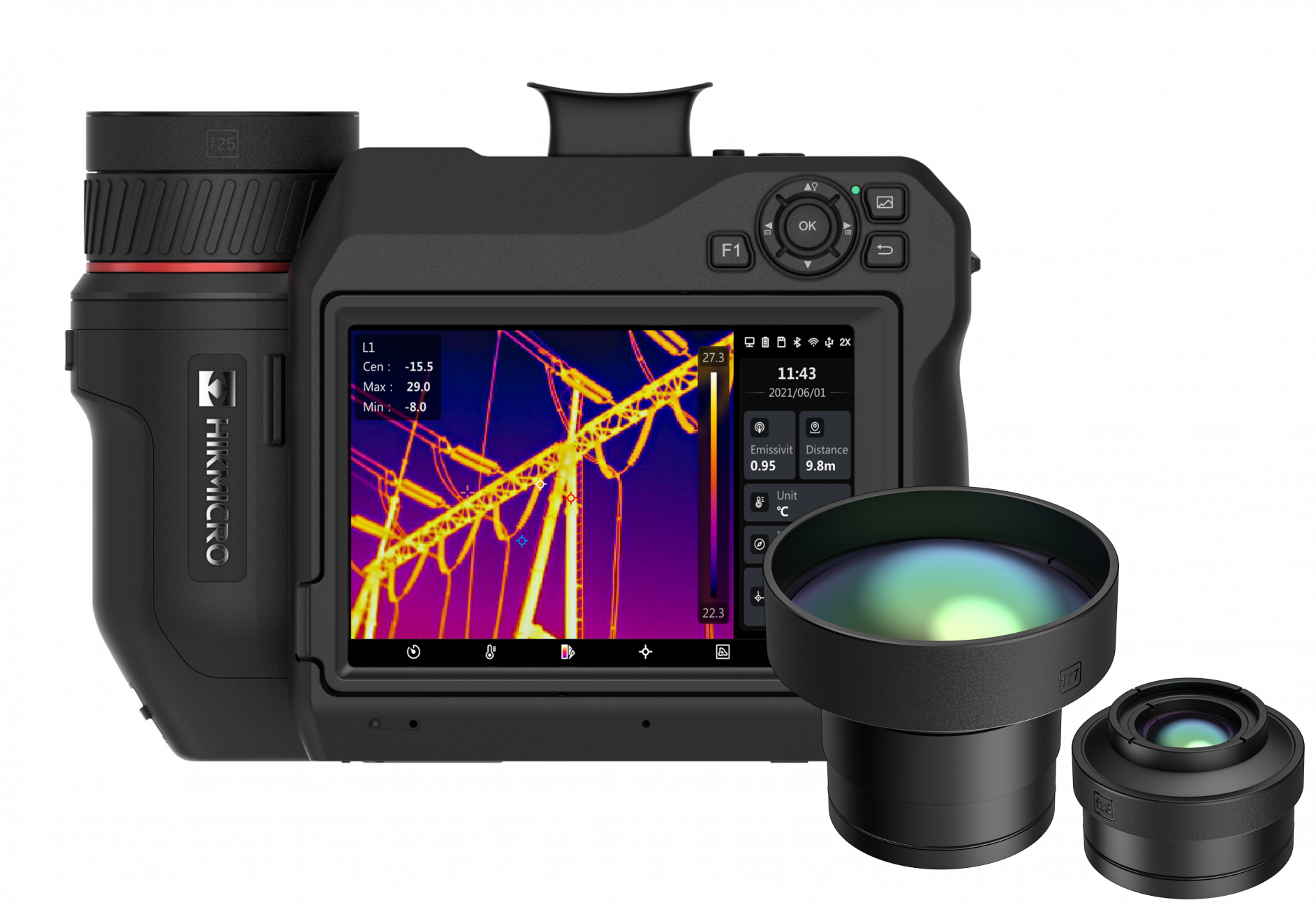 640x480 (307 200 pixelů), NETD<30mk, 30Hz, -40~2200℃, laserové/manuální ostření