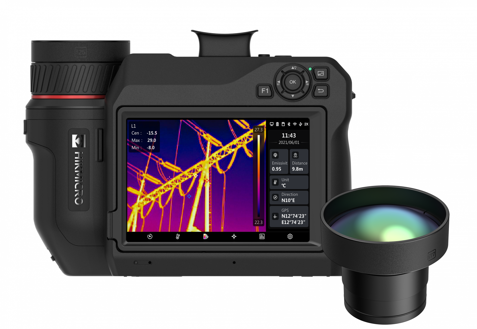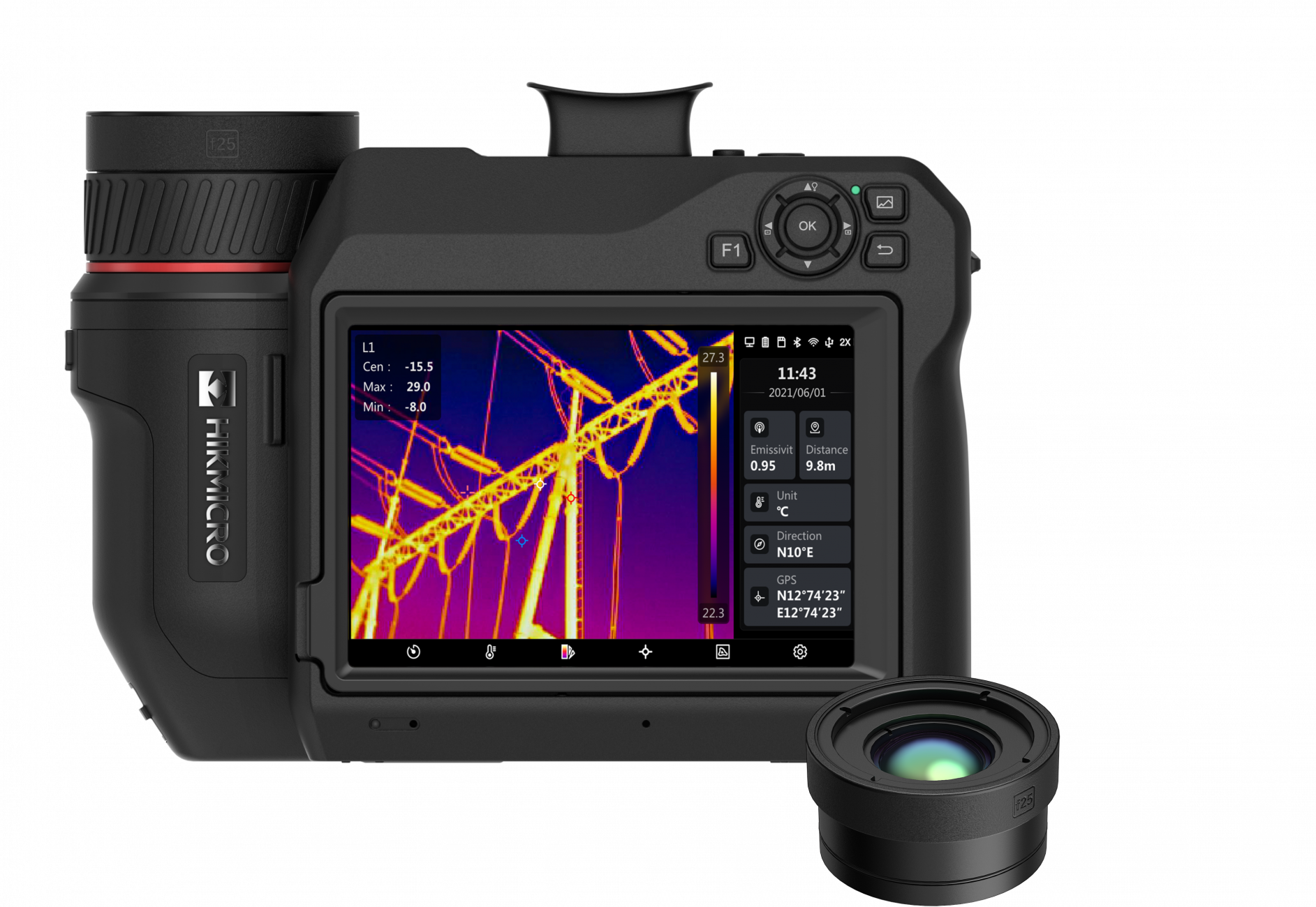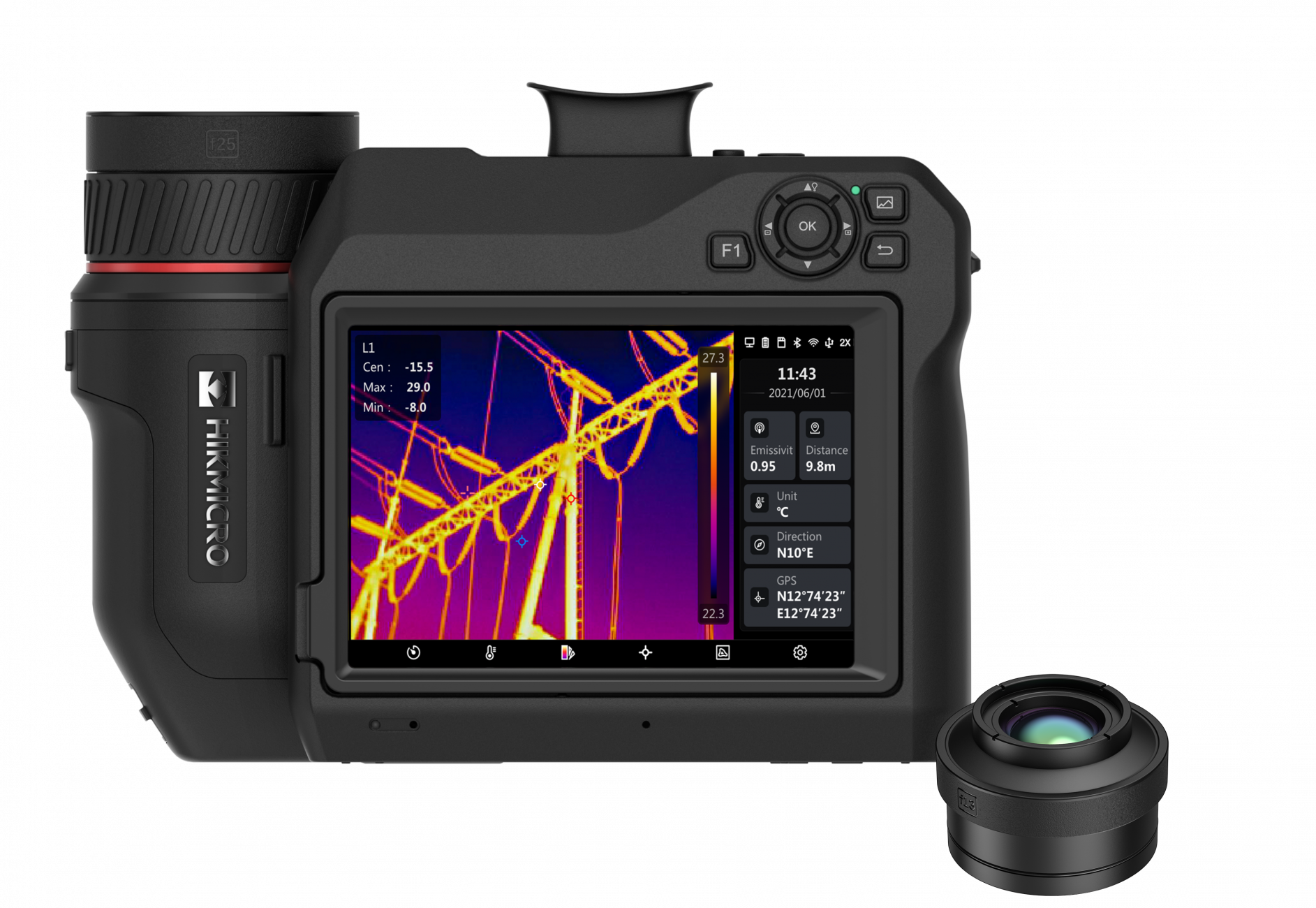 640x480 (307 200 pixelů), NETD<30mk, 30Hz, -40~2200℃, laserové/manuální ostření