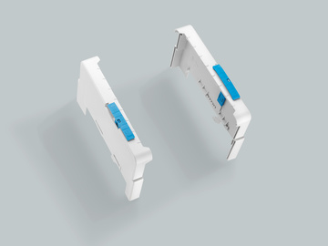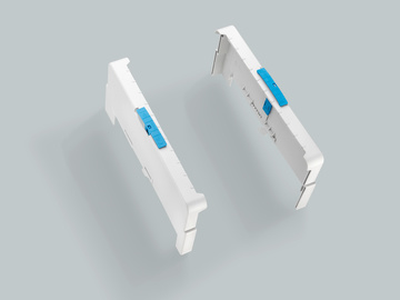 - Spodný kryt s nastaviteľnou dĺžkou (oddelenie systému od podložky/zadnej steny rozvádzača, nutné v UL aplikáciách)