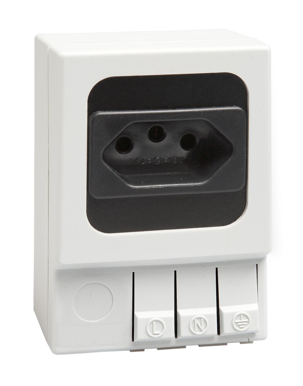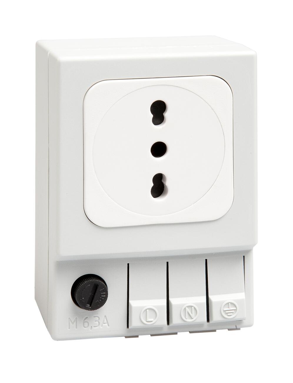 Elektrická zásuvka je jednoducho upevniteľná na DIN lištu v rozvádzači a umožňuje pripojenie rôznych zariadení. Dostupná varianta s poistkou alebo bez poistky podľa různych svetových štandardov.