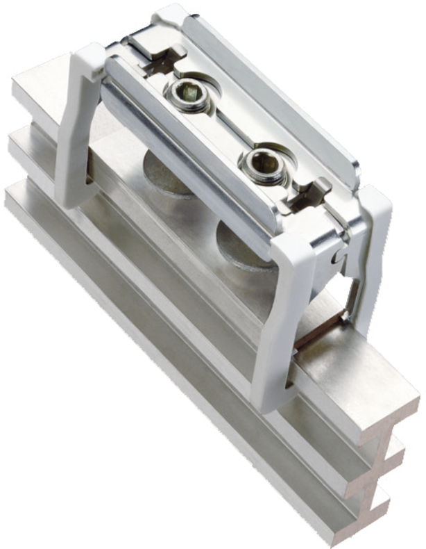 Univerzálne pripojovacie svorky pre vodiče s prierezom 1,5 až 120 mm2 na prípojnice hrúbky 5 alebo 10 mm. Integrované zaisťovacie pružiny, otvorený rám svorky a uťahovacia skrutka svorky s poistkou proti úplnému vyskrutkovaniu umožňujú jednoduchú montáž.