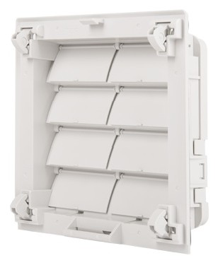 Zástavbová hloubka: 66 mm; Výstup vzduchu přes vzduchové klapky; Schválení: UL File No. E187294, EAC a VDE.